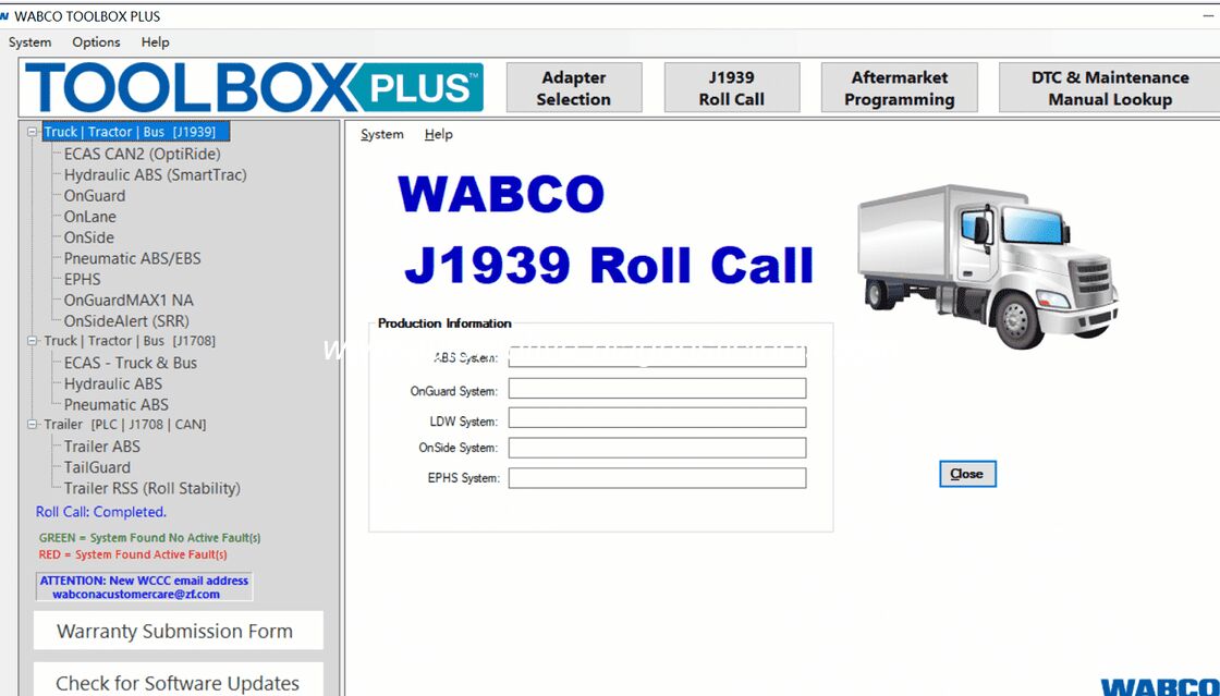 Εισαγωγή στο WABCO TOOLBOX PLUS Το WABCO TOOLBOX PLUS είναι ένα διαγνωστικό λογισμικό που χρησιμοποιείται για τη συντήρηση και τη συντήρηση των συστημάτων πέδησης, ελέγχου σταθερότητας και ασφάλειας WABCO σε επαγγελματικά οχήματα.Αυτό το λογισμικό είναι ζωτικής σημασίας για τη διασφάλιση των οχημάτων που είναι εξοπλισμένα με προϊόντα WABCO λειτουργούν με ασφάλεια και αποτελεσματικότηταΤο TOOLBOX PLUS παρέχει στους τεχνικούς τη δυνατότητα διάγνωσης, προγραμματισμού και παρακολούθησης συστημάτων όπως ABS, ηλεκτρονικά συστήματα πέδησης (EBS) και συστήματα μείωσης των συγκρούσεων.Με το διαισθητικό περιβάλλον και τα ισχυρά χαρακτηριστικά του, ελαχιστοποιεί τον χρόνο στάσης του οχήματος και εξασφαλίζει την ταχεία επίλυση των σφαλμάτων του συστήματος.