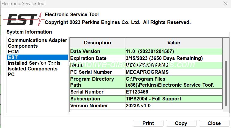 Λογισμικό Perkins EST 2025A (Electronic Service Tool) με ενσωματωμένη γεννήτρια κωδικών πρόσβασης
